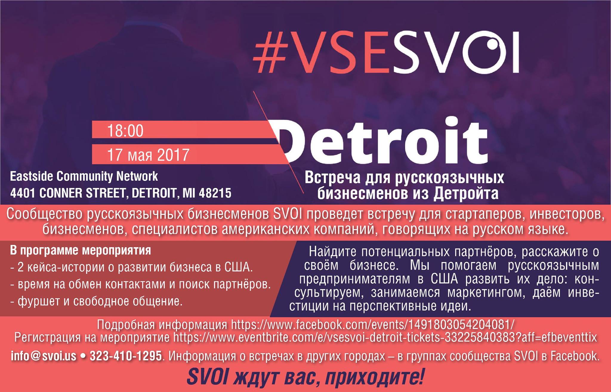 Встреча прошла в свободном формате. После приветственного слова Артёма Геращенкова (организатор “VSESVOI”, серийный предприниматель, управляющий партнер Gekos Venture Capita), бизнесмены и специалисты крупнейших компаний США знакомились друг с другом, обсуждали свои идеи, делились опытом своего успеха на американском рынке услуг и товаров.
